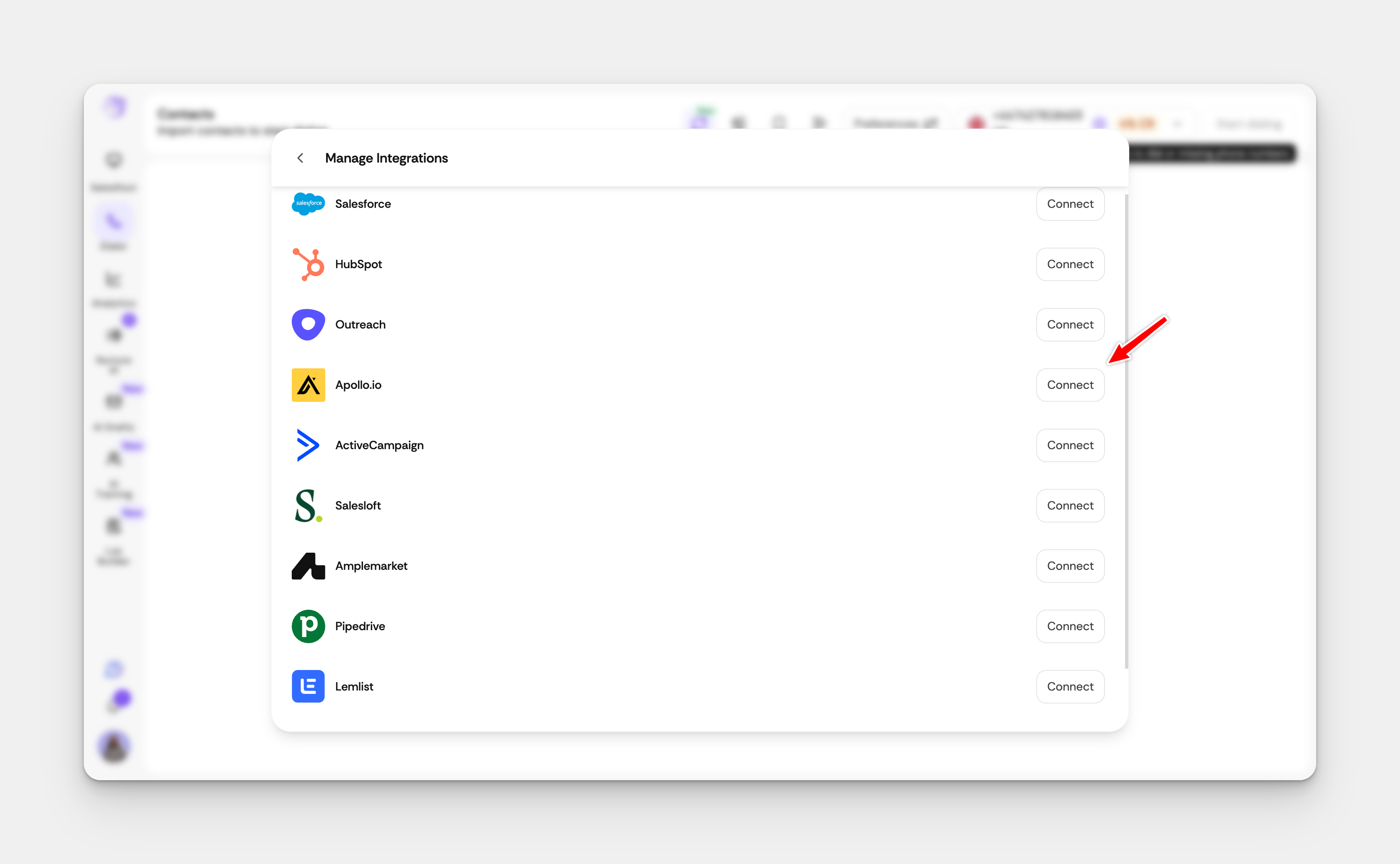 Find the Apollo Integration section and click Connect.