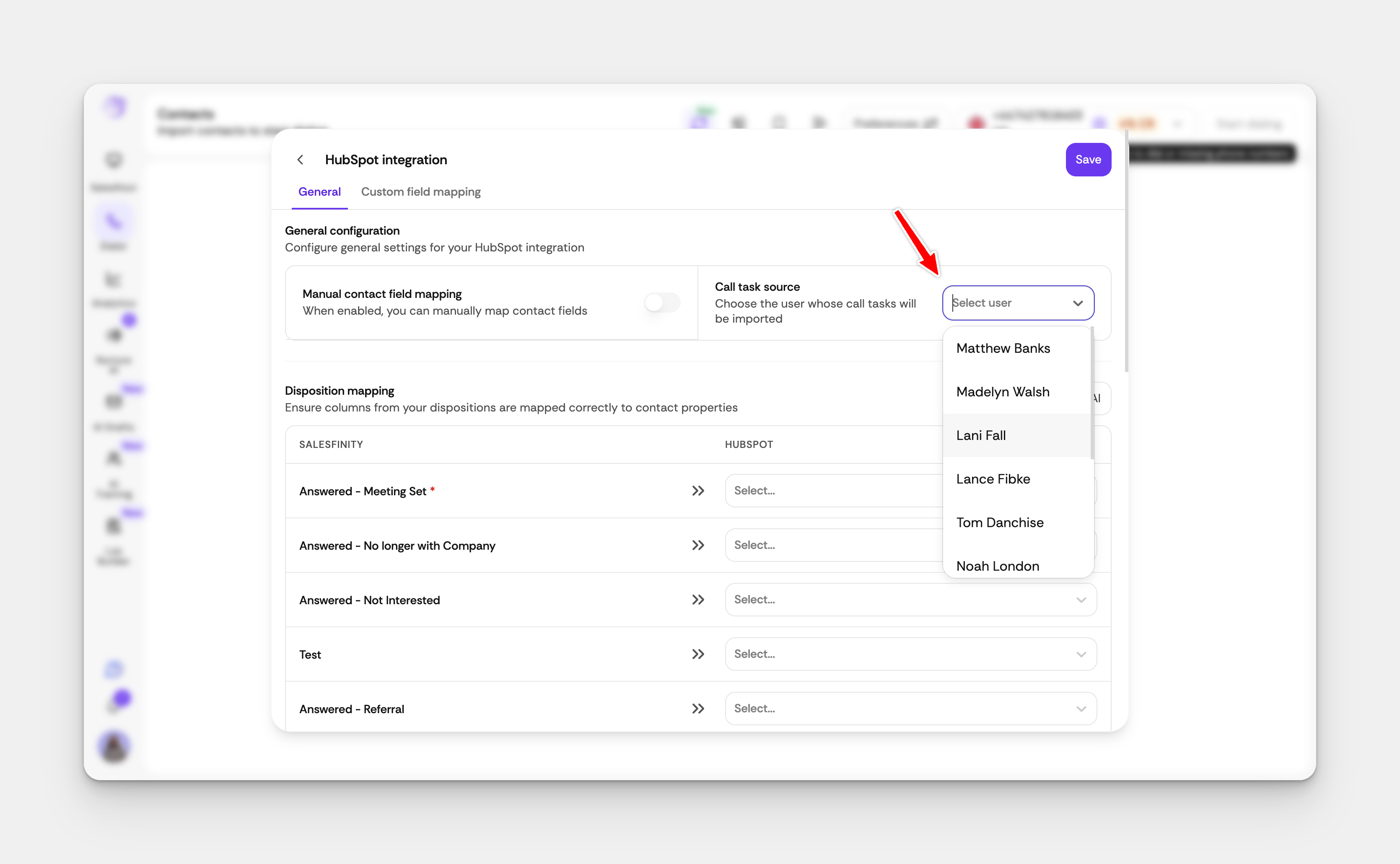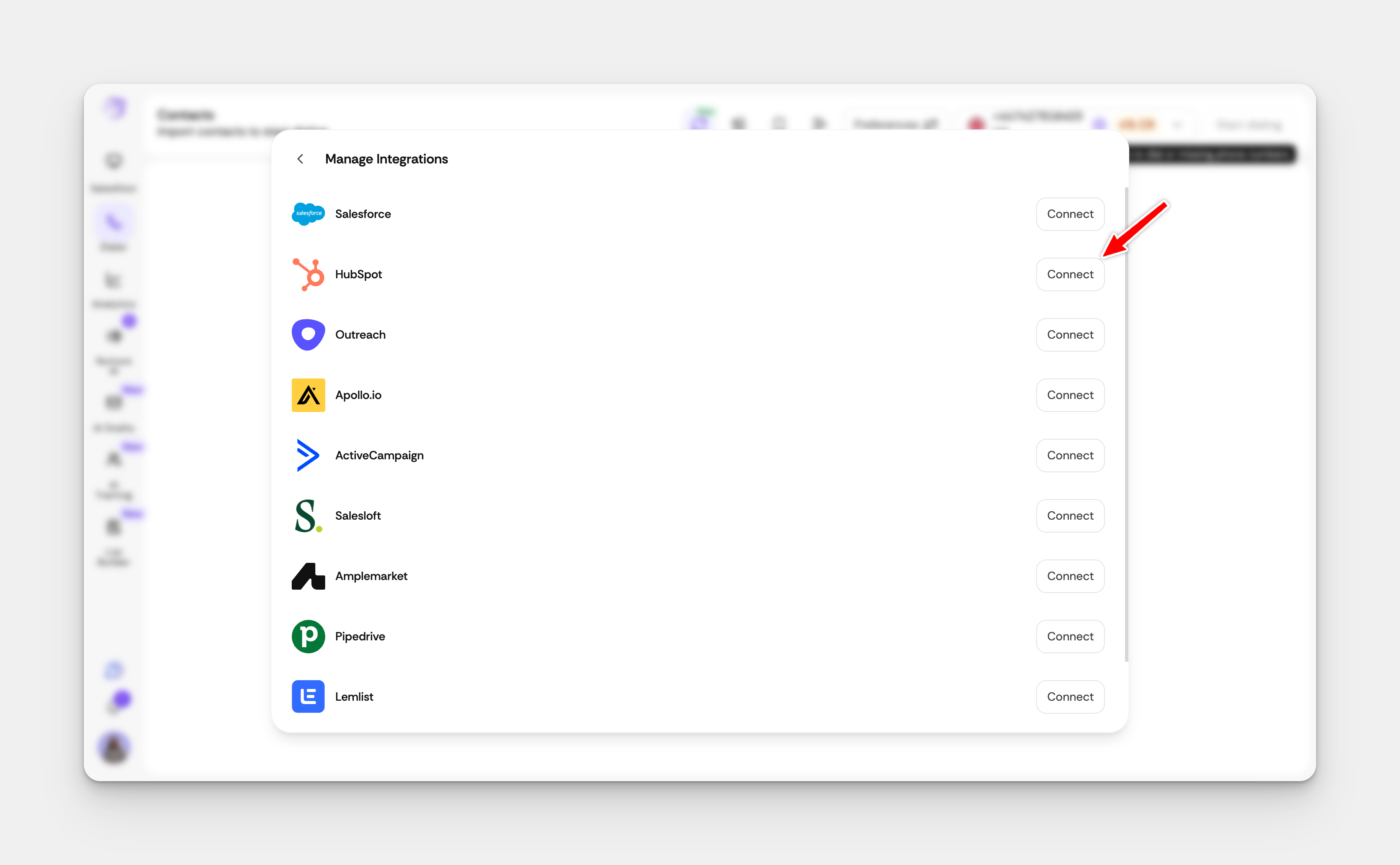 Once the integration is active, you can start importing due call tasks directly from Hubspot to Salesfinity.