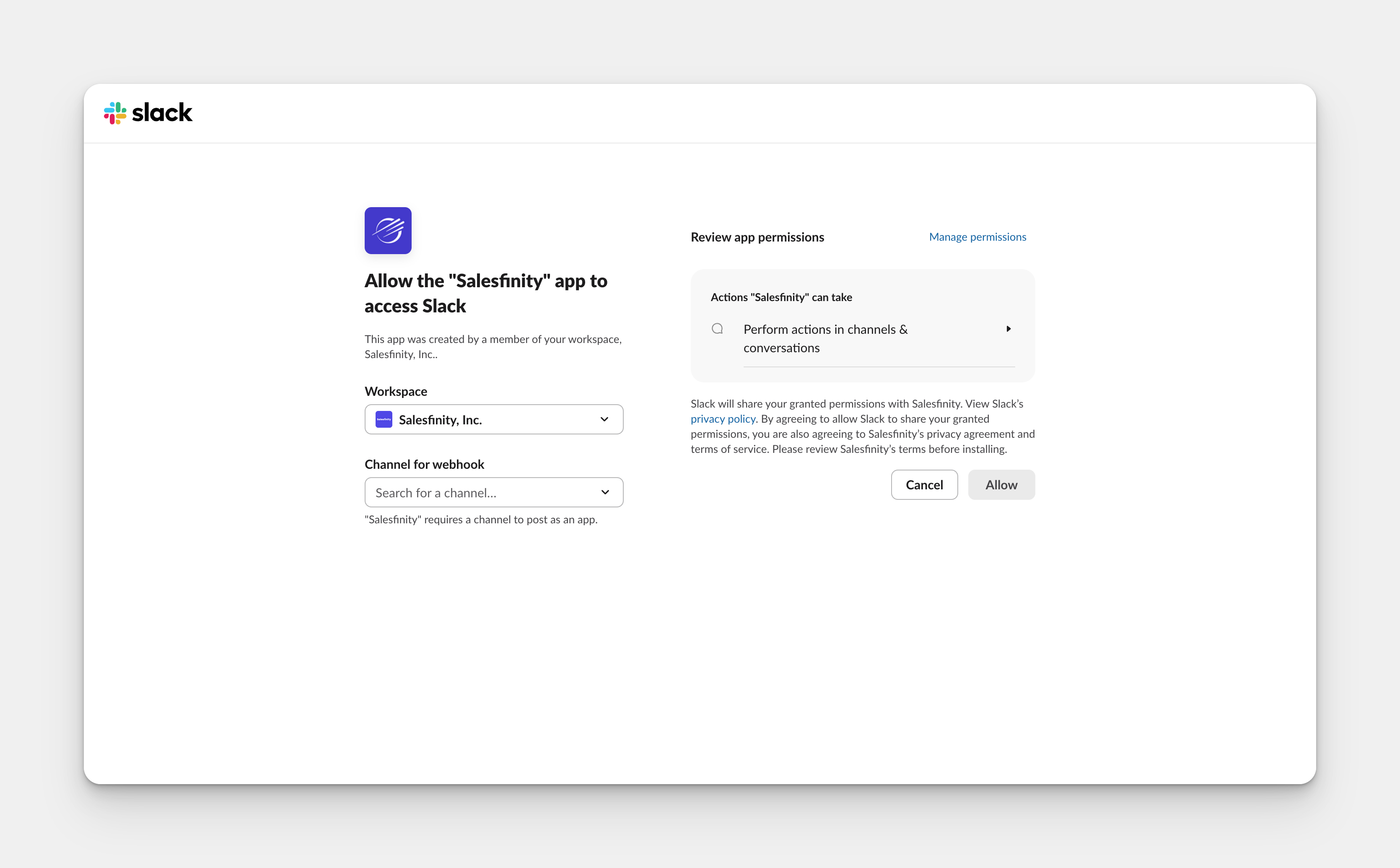 Salesfinity + Slack Integration