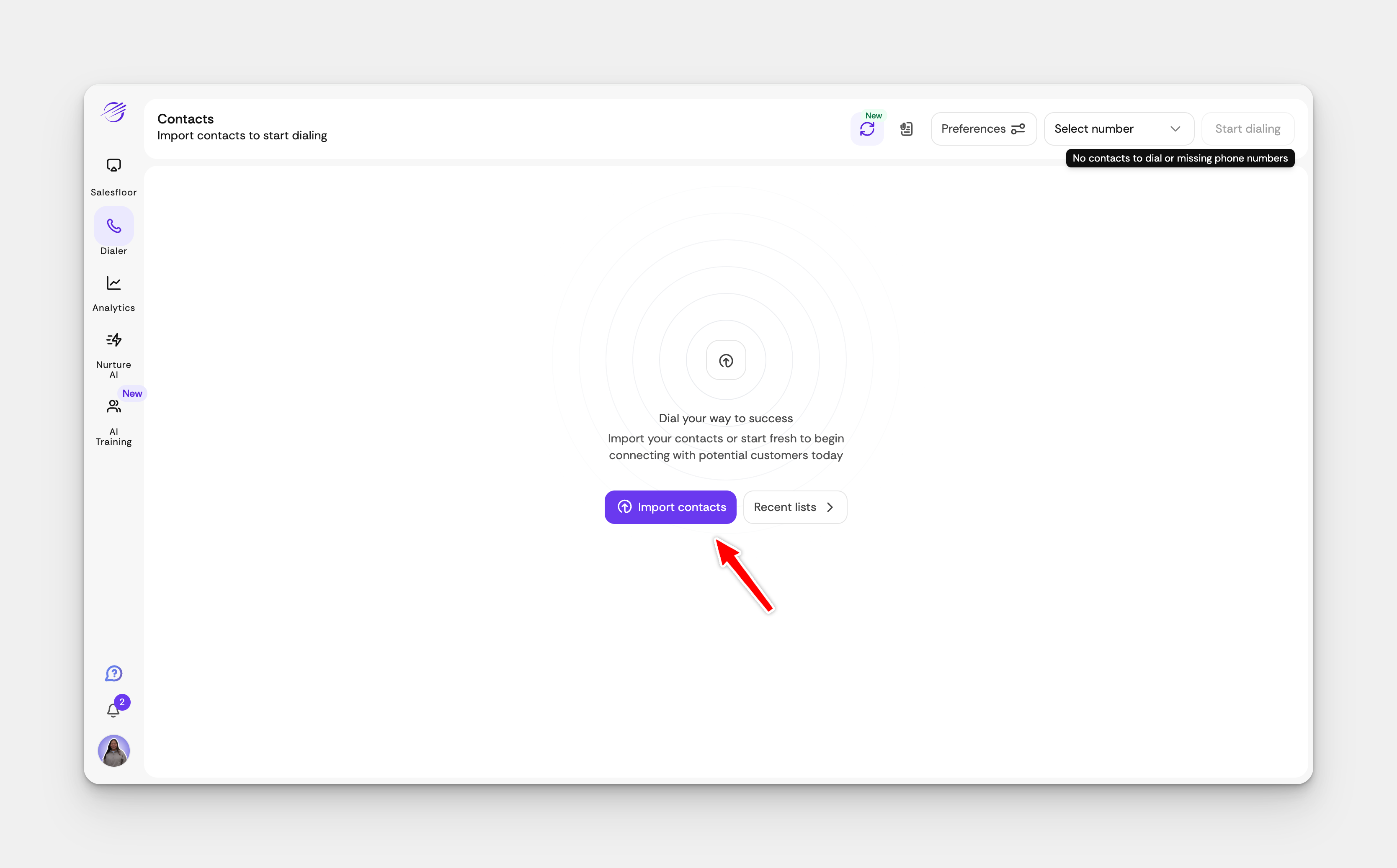 Open your Salesfinity dashboard and click on 'Import Contacts'.