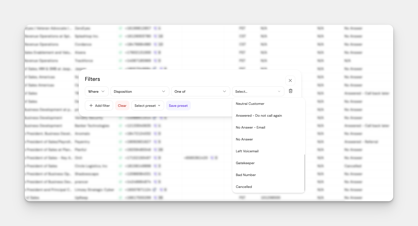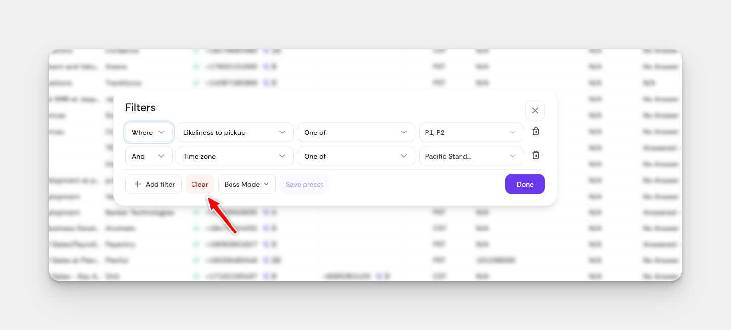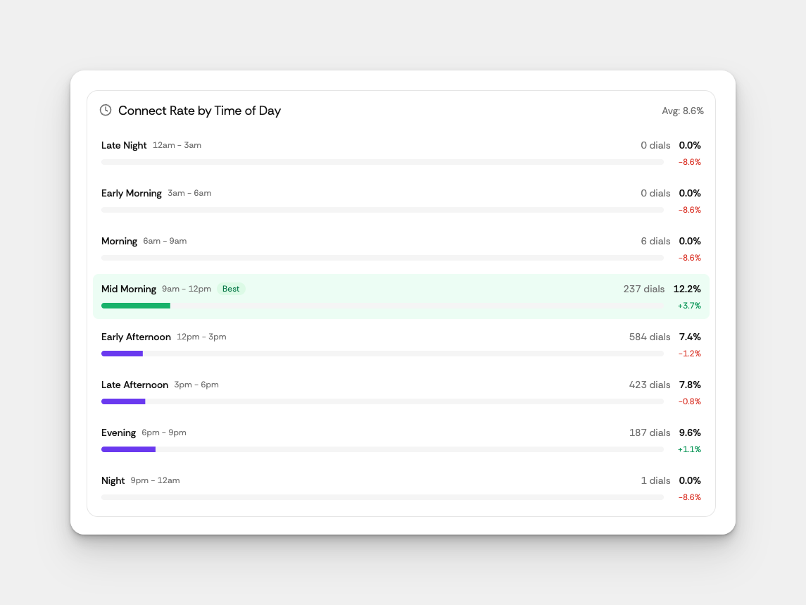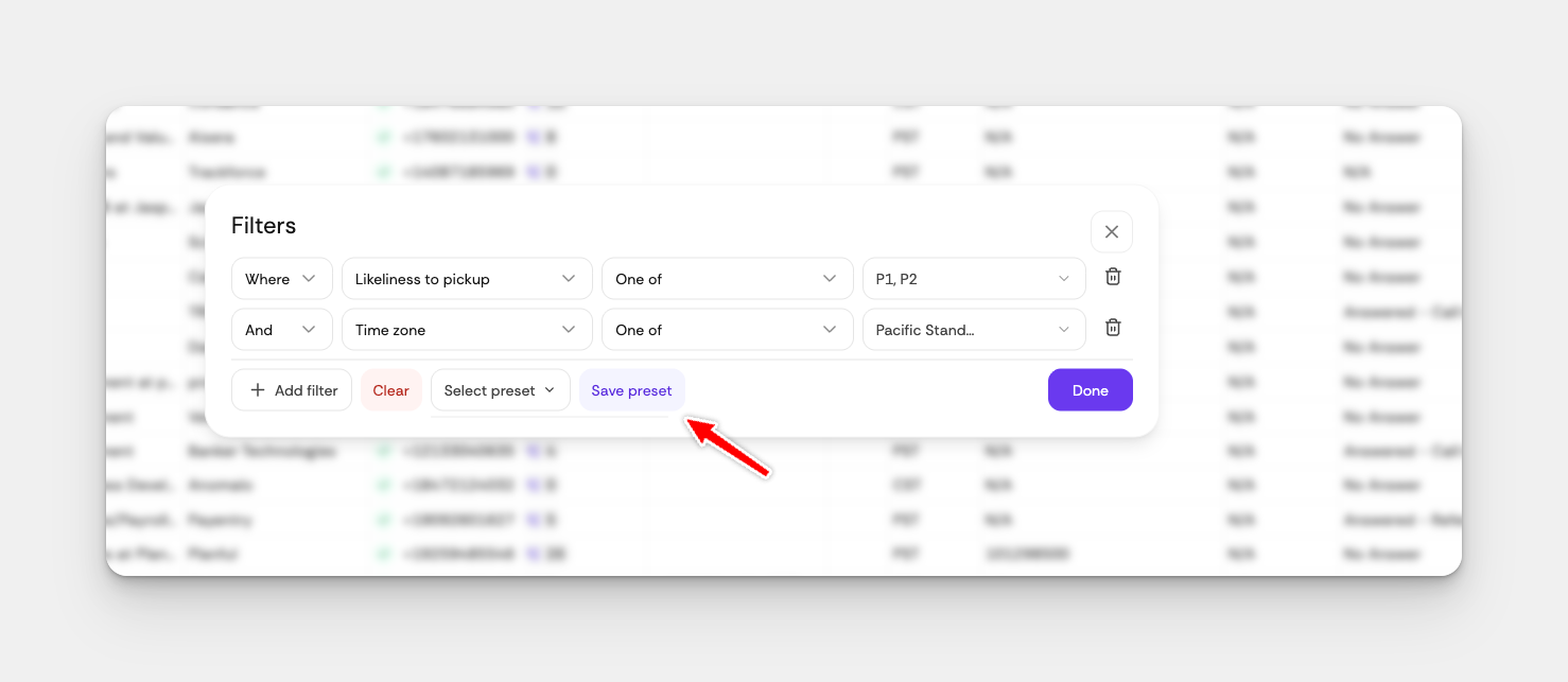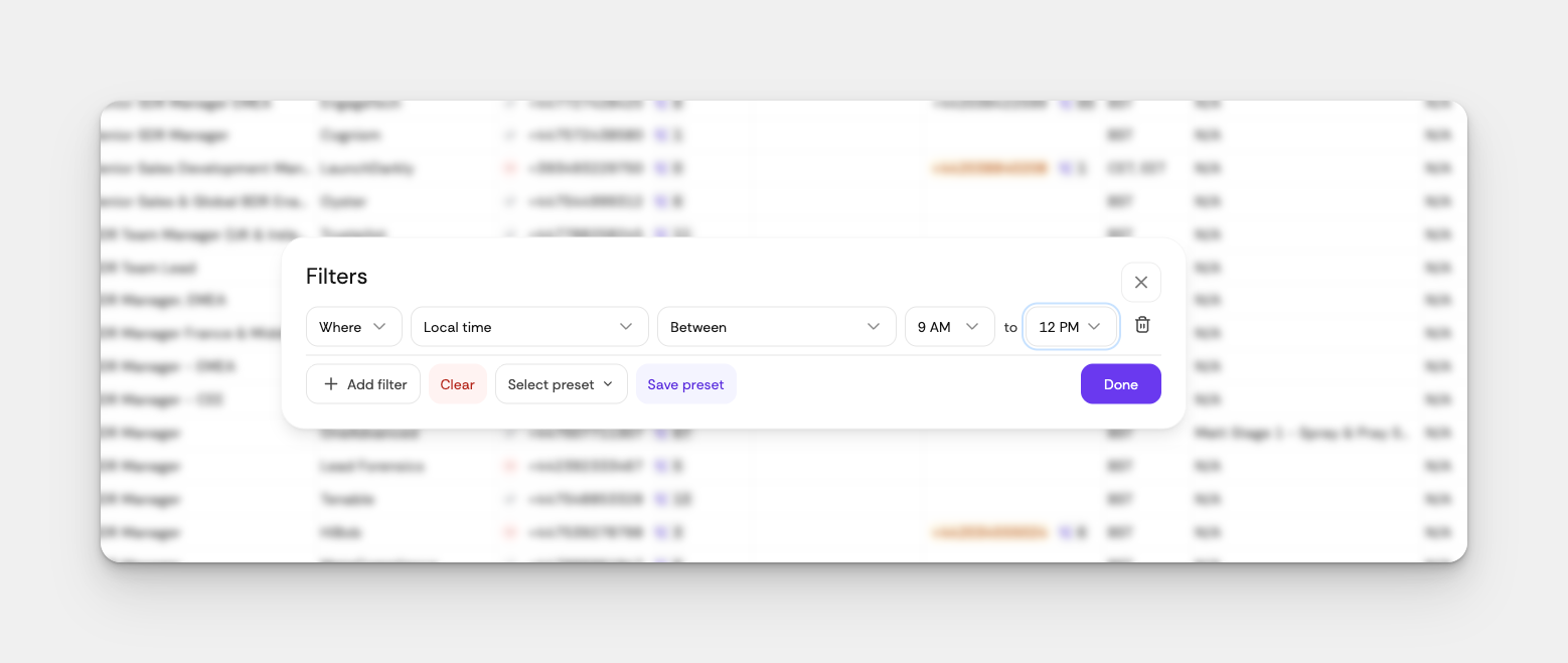 Pair this with your Connect Rate analytics to find your golden hours, then build a filter that automatically queues up the right prospects at the right time.